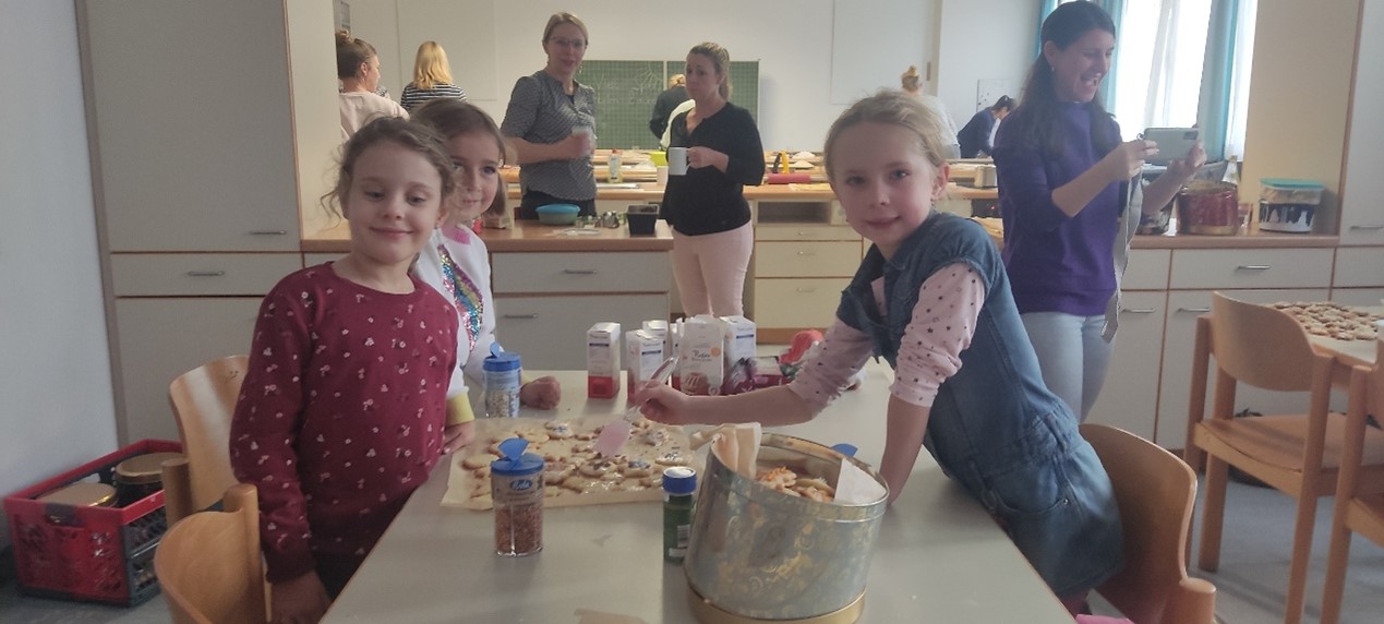 Am Freitag, den 14.11.2025 haben sich einige fleißige Bäckerinnen und Bäcker getroffen, um für den Christkindlmarkt Plätzchen zu backen. Mit Hilfe der Mamas wurde fleißig ausgestochen und mit viel Liebe verziert. Das Ergebnis waren viele tolle, leckere Plätzchen. Ein großes Dankeschön an alle, die mitgemacht haben.