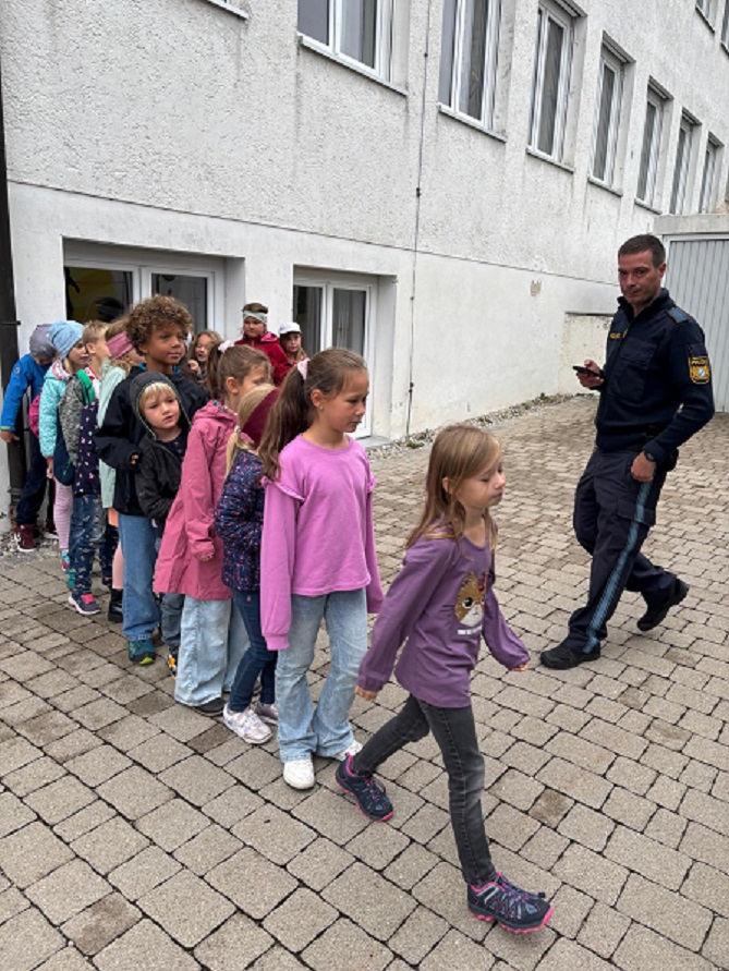Nach einer kurzen Einführung ging es für die Kinder auch praktisch los: Sie übten das richtige Verhalten beim Ein- und Aussteigen. Besonders beeindruckend war die sogenannte „Vollbremsung“, bei der die Schülerinnen und Schüler am Beispiel von „Seppl“ sahen, wie wichtig es ist, sich im Bus gut festzuhalten.