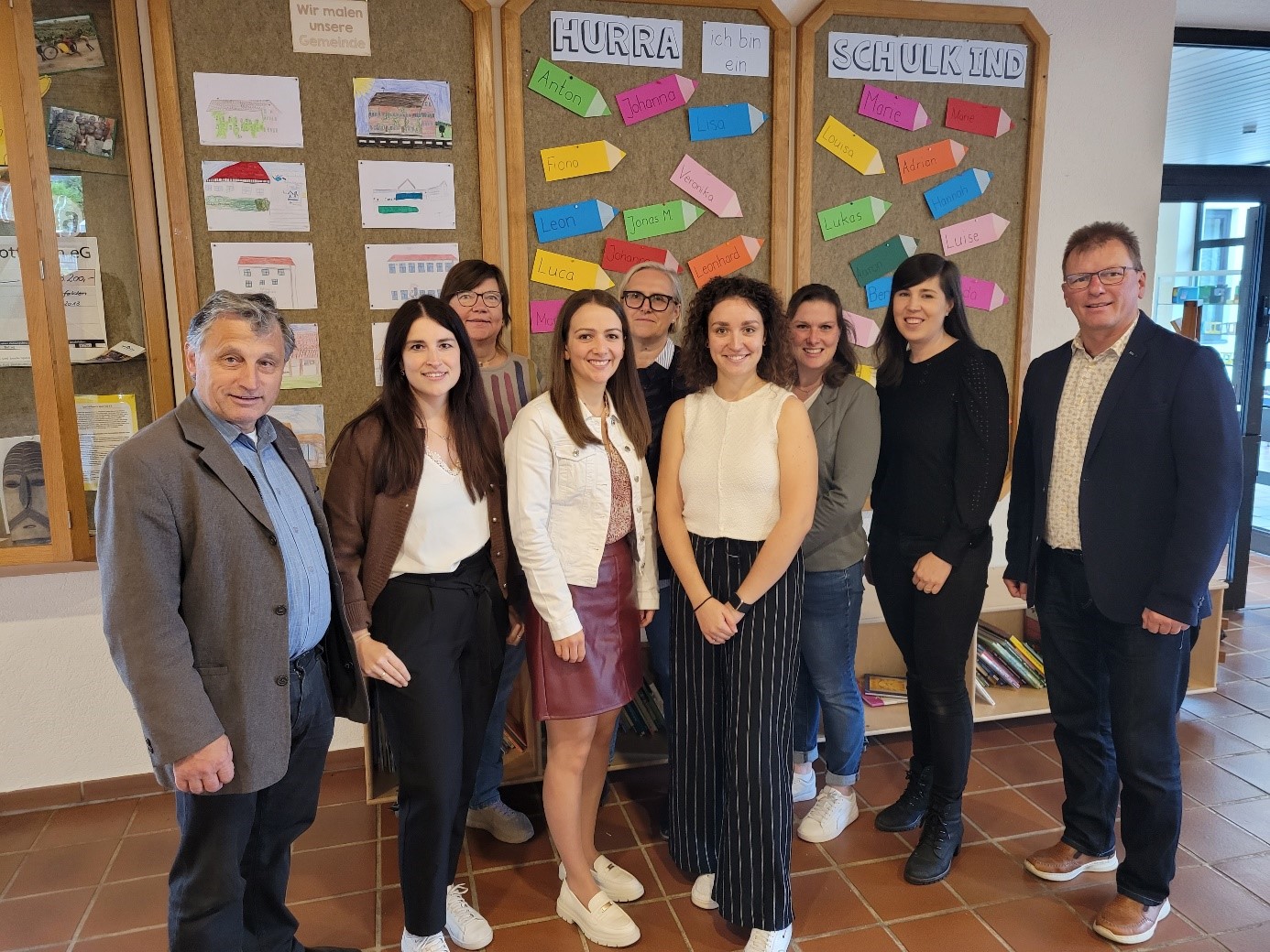 Von links: Pfarrer Josef Rainer, Lin Tanja Ortner, Annette Kranz (ev.RL), Lin Carina Stockinger, VA Christiane Schinko, Lin Laura Fisch, Lin Monika Mooser, Lin Verena Aich, Rektor Robert Gabriel